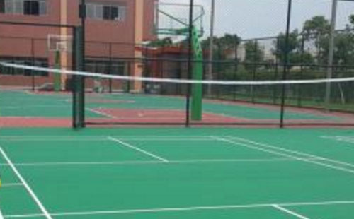 基料涂层:用强化沥青填充剂加石英砂和水混合搅匀后满刮场地二遍;